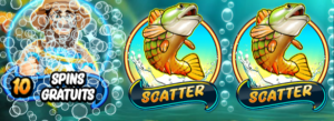 Chaque fois que deux scatters vont s’afficher sur l’écran, une pièce sera produite puis collectée par le pêcheur correspondant à sa couleur. Ce qui peut déclencher aléatoirement la fonction free spins inhérente avec 10, 15 ou 20 tours gratuits.