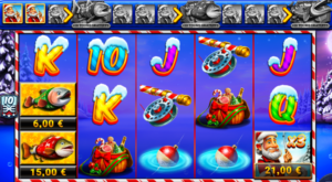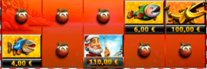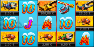 Des poissons de diverses tailles et valeurs vous rappelleront probablement la machine à sous originelle. Ceux-ci sont affublés d’un pull en laine aux graphismes hivernaux.