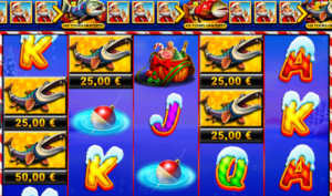 Dans le jeu bonus, tout pêcheur atterrissant seul lors d’un free spin sans symbole poisson se verrouille sur sa position. Et il le restera pour les tours suivants (seuls les autres rouleaux étant relancés) jusqu’à ce qu’un ou plusieurs poissons fassent leur apparition.