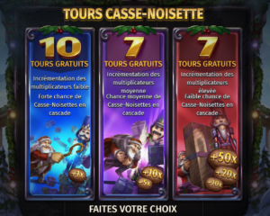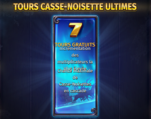 Enfin, si vous activez les tours casse-noisette ultimes, vous obtiendrez 7 tours gratuits avec l’incrémentation la plus élevée ainsi qu’une chance maximale de casse-noisette en cascade.