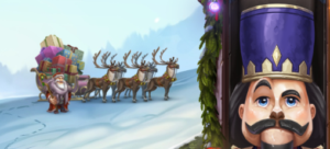 Ce sont les artisans allemands des régions montagneuses qui ont commencé à sculpter ces figurines en bois au 17ème. C’est donc tout naturellement que l’éditeur a choisi cet environnement pour la trame de Big Stack Nutcrack. À perte de vue, des sapins sous la neige et des montagnes. En avant-plan, le père Noël qui patiente près de son traîneau attelé.