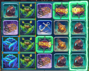 Un symbole mystère, l’algue, peut apparaître empilé (jusqu’à 4 par pile) sur un ou plusieurs rouleaux. Lorsque c’est le cas, une fonction spéciale est déclenchée : tous les symboles mystères descendent d’une position à chaque tour, en révélant un symbole identique (différent à chaque spin).