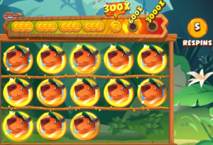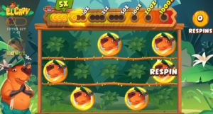 Si au moins un nouveau symbole de Capy s’affiche, +1 respin est octroyé et la jauge augmente de 1 pour chacun.