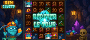 Dans le jeu de base, obtenir 3 wilds ou plus déclenche la fonction « répéter le tour » de Gem Ghosts.