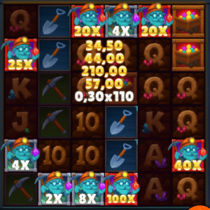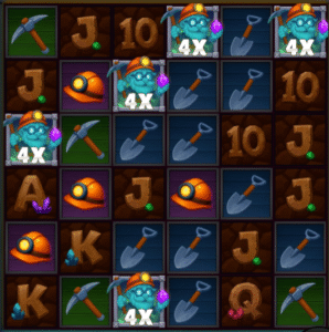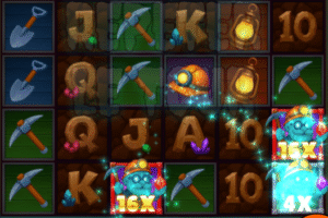 Le vieux mineur tient évidemment le premier rôle : celui du wild, qui peut être doté d’un multiplicateur aléatoire (x2 → x100). Si plusieurs wilds font partie d’une combinaison gagnante, leurs valeurs multiplicatrices seront additionnées avant d’être appliquées.