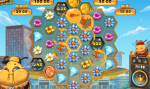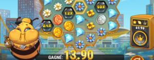 Toute collecte sur Honey Rush Black & Yellow est susceptible de déclencher la fonction Bee : l’abeille attribue alors un instant bonus parmi le mini (10x la mise), le minor (20x), le major (50x) et le grand (100x).