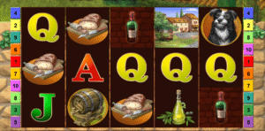 Le design est plus soigné et les symboles ont (presque tous) fait peau neuve. Mais la gourmandise est toujours présente, avec un sublime jambon cru, des grands crus et des alcools fins italiens, des olives noires & produits dérivés ainsi qu’un alléchant fromage accompagné de raisin. Quant au wild, symbolisé par le beau brun, il n’apparaît que pendant les free spins.