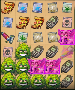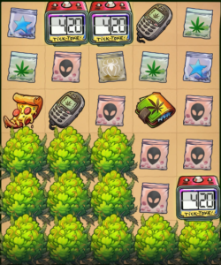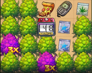 La première, Burning Buds, s’active systématiquement à chaque tour : la grille est plus ou moins recouverte d’inflorescences de marijuana (les buds) qui bloquent les gains normaux.