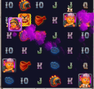 Ce multiplicateur s’applique au gain lorsqu’un symbole gagnant atterrit dessus. Tout multiplicateur est actif tant que dure les cascades d’un même tour. Et si plusieurs multiplicateurs participent à un gain, leurs valeurs sont additionnées et appliquées.
