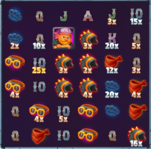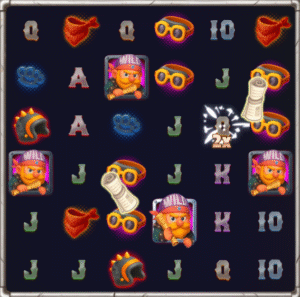 Ce dur à cuir s’est installé à gauche de la grille 6×6. Il symbolise le wild, l’un des trois symboles spéciaux. Le second est le scatter, symbolisé par le chien. Le troisième est le journal roulé, à l’origine de plusieurs fonctions spéciales lorsqu’il atterrit.
