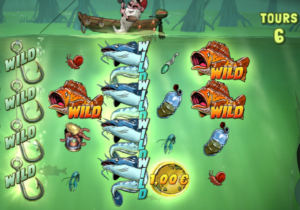 7 parties sont alors attribuées, avec le premier rouleau entièrement rempli d’hameçons. Un atout non négligeable, puisque cela déclenchera irrémédiablement la fonction de tout symbole spécial atterrissant sur les rouleaux.