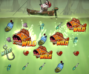 Dans le jeu de base, lorsqu’il apparaît sur le 1er rouleau en partant de la gauche, un système de relances est activé. L’hameçon se déplace alors d’une position vers le bas à chaque respin, jusqu’à ce qu’il disparaisse.