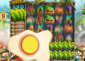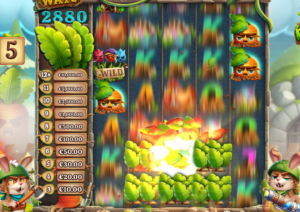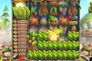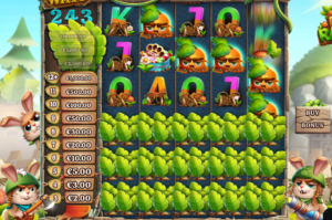 Le lapin de droite tire avec son bazooka sur les feuilles de salade des trois rouleaux horizontaux verrouillés, afin de découvrir des cases. Ce qui a pour effet d’étendre verticalement les rouleaux de +1, +2 ou +3 (le maximum) hauteurs supplémentaires. Chaque rouleau peut s’étendre individuellement ou par groupe. La configuration et donc le nombre de lignes gagnantes passe alors de 5×3 avec 243 façons de gagner à 5×6 avec 7 776 façons de gagner.