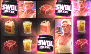 Dans ce cas, la fonction spéciale s’active : une valeur et un multiplicateur aléatoires s’affichent, pour un gain instantané. Lorsque plusieurs symboles Swoll apparaissent côté-à-côte, ils peuvent fusionner ensemble ; leurs valeurs s’additionnent alors et leurs multiplicateurs se multiplient.