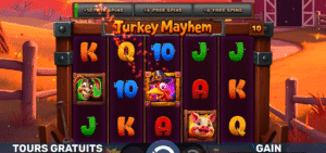 Dans Turkey Mayhem, une machine à sous signée Spinomenal, la dinde n’est ni farcie ni rôtie. Elle se pavane un beau jour d’automne dans une ferme au milieu des autres animaux, l’esprit libre et libéré du danger de Thanksgiving. Une approche qui séduira les défenseurs de la cause animale ainsi que les végétariens.