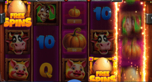 C’est dans cette ambiance paisible qu’évoluent vaches, cochons, ânes et chèvres dans le jeu principal. Car la dinde (le wild), habillée d’un chapeau Pilgrim sur la crête, joue les vedettes capricieuses en apparaissant uniquement pendant les tours gratuits. Mais son œuf représente le symbole spécial free spins.