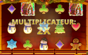 Mais dans Xmas Bakery, nul jeu bonus. La seule fonction spéciale est intitulée reel shift & multiplier. Après un gain, tous les rouleaux se déplacent/décalent ainsi vers la gauche : le 1er est retiré et un nouveau rouleau apparaît en tant que 5ème.